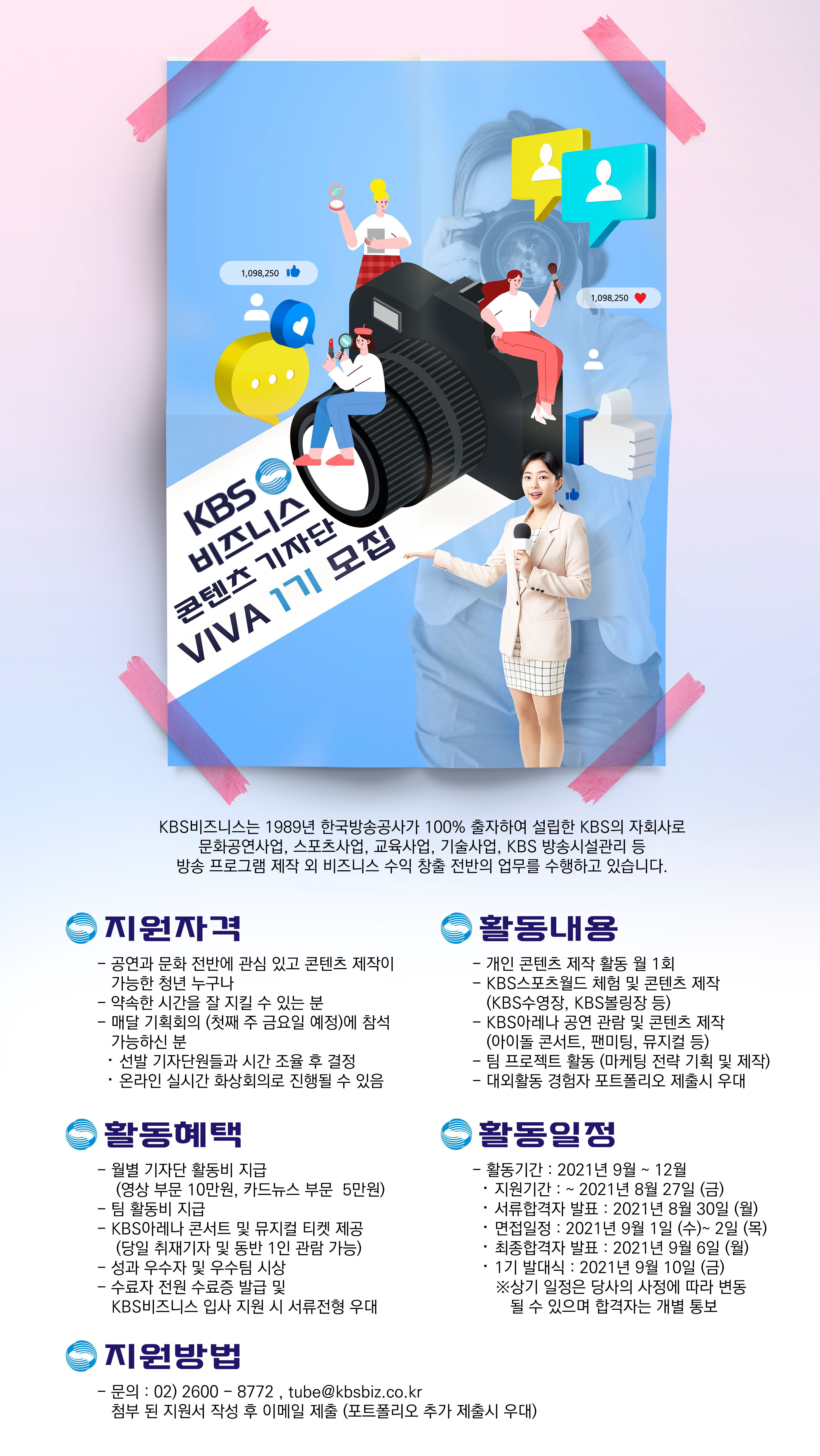 ① 공고 하단에 "KBS비즈니스 콘텐츠 기자단 Viva 1기 모집글" 지원서 다운로드 및 작성 or KBS비즈니스 공식 블로그(지원링크)