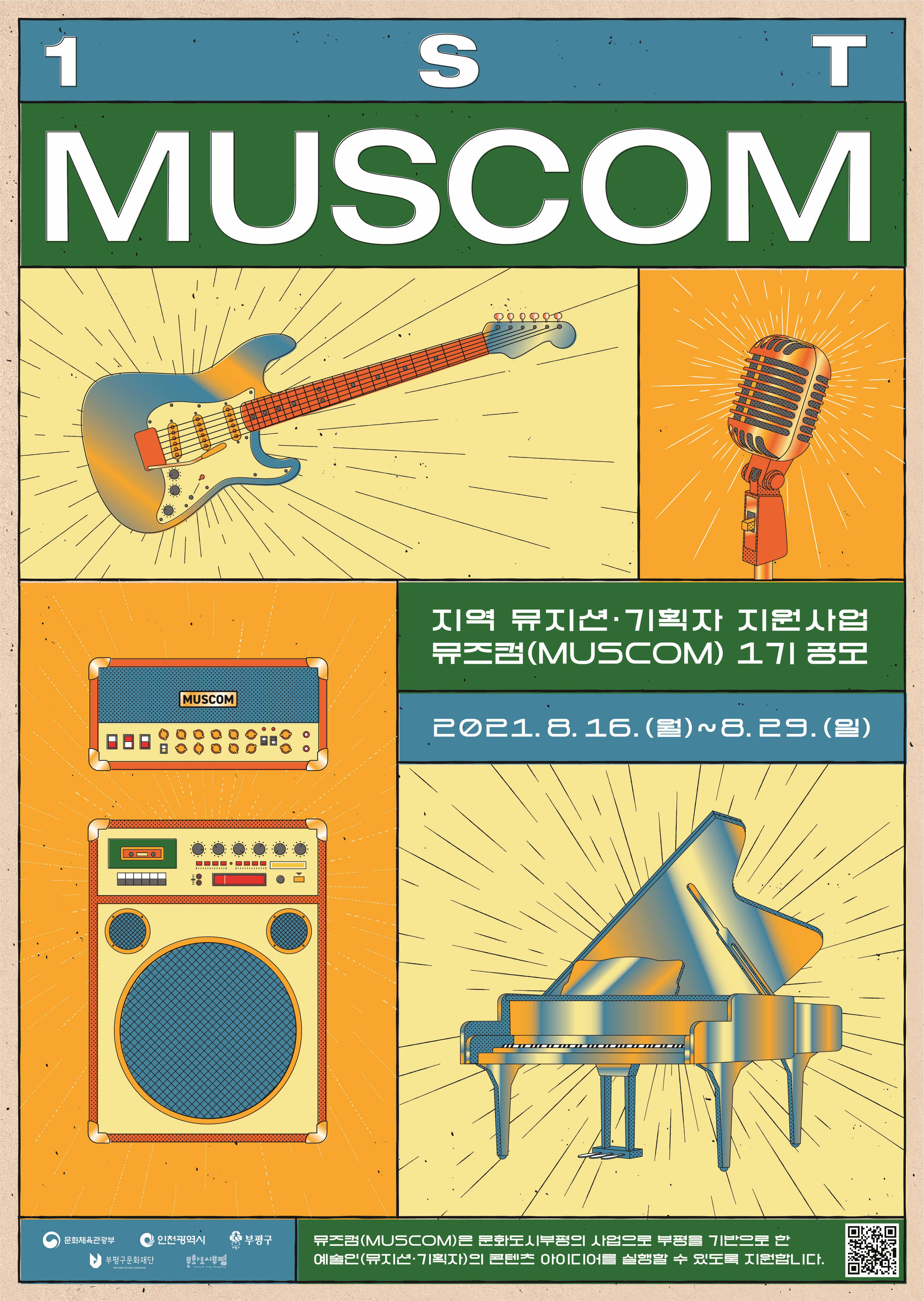 <뮤즈컴(MUSCOM) 공모사업>은 부평구 문화도시 사업에 하나로 뮤지션과 기획자들이 부평에서 다양하고 실험적인 음악 활동을 지속할 수 있도록 지원하고자 합니다. 지역에서 펼쳐질 즐거운 음악 활동을 위해 여러분의 많은 참여 부탁드립니다.
