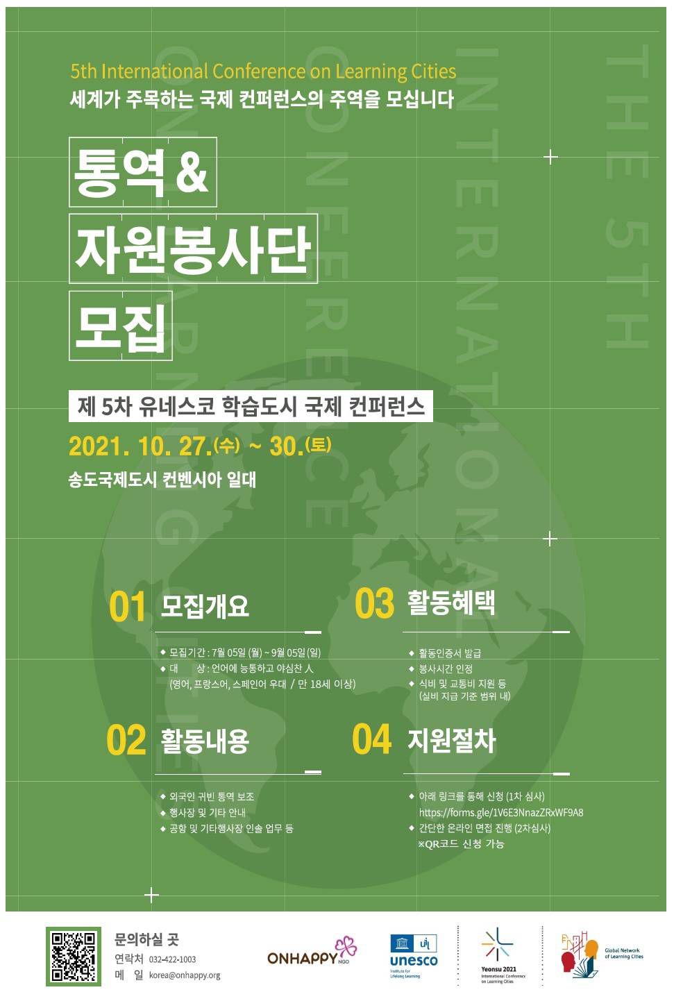 제 5차 유네스코 학습도시 국제 컨퍼런스 통역&자원봉사단 모집