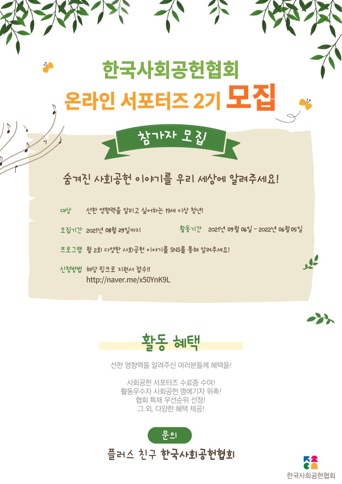 * 한국사회공헌협회에서 선한 영향력을 함께 알릴 청년들을 모집합니다.