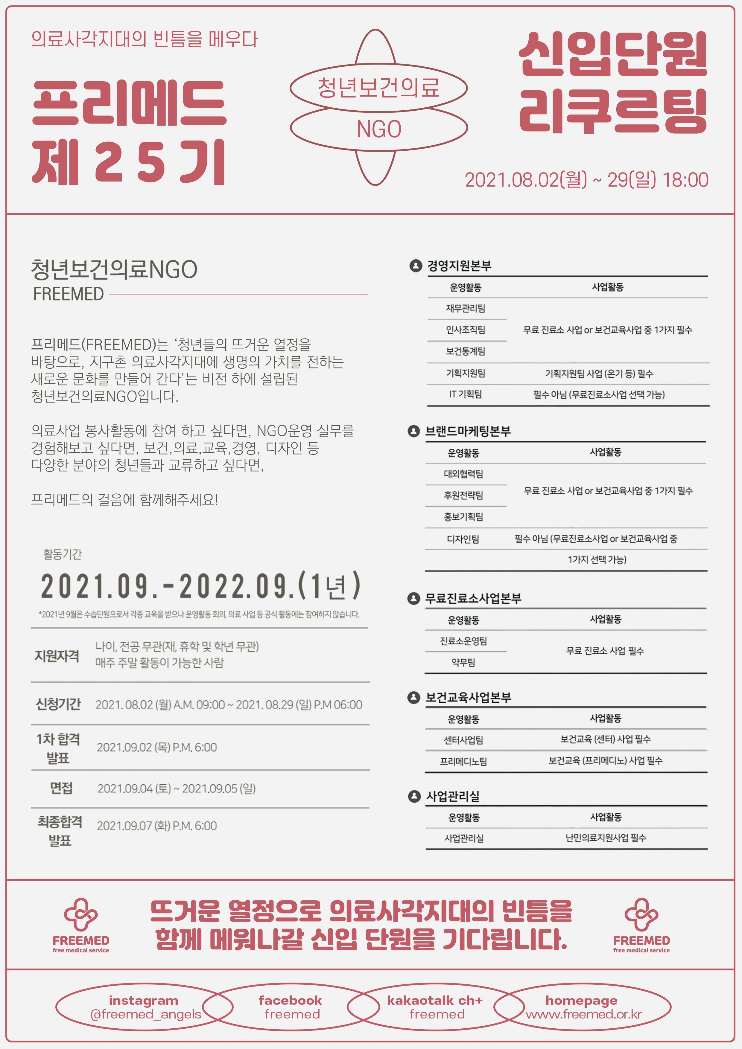 ❤️프리메드 25기 단원 모집❤️