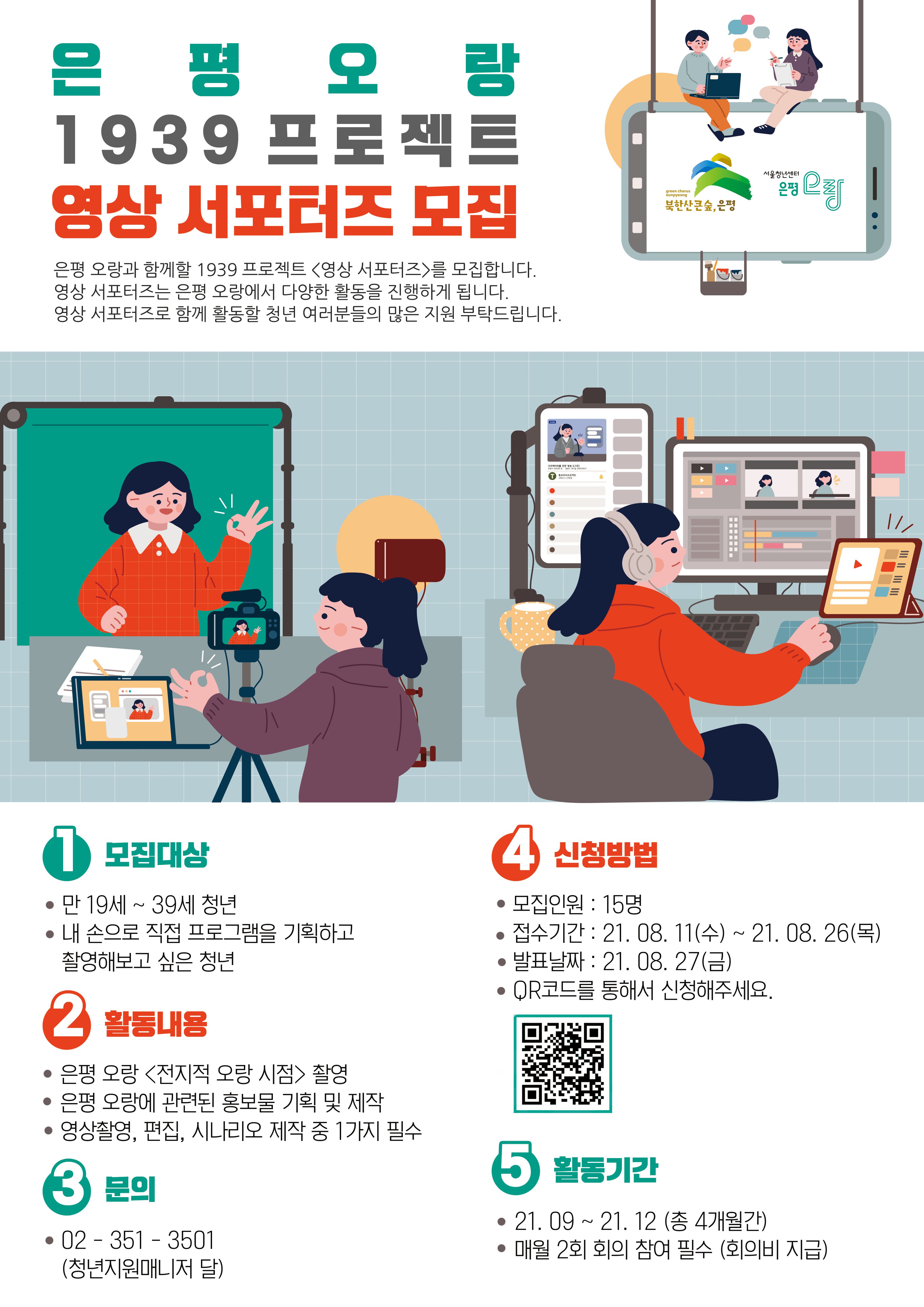 은평 오랑과 함께할 1939 프로젝트 <영상 서포터즈>를 모집합니다.