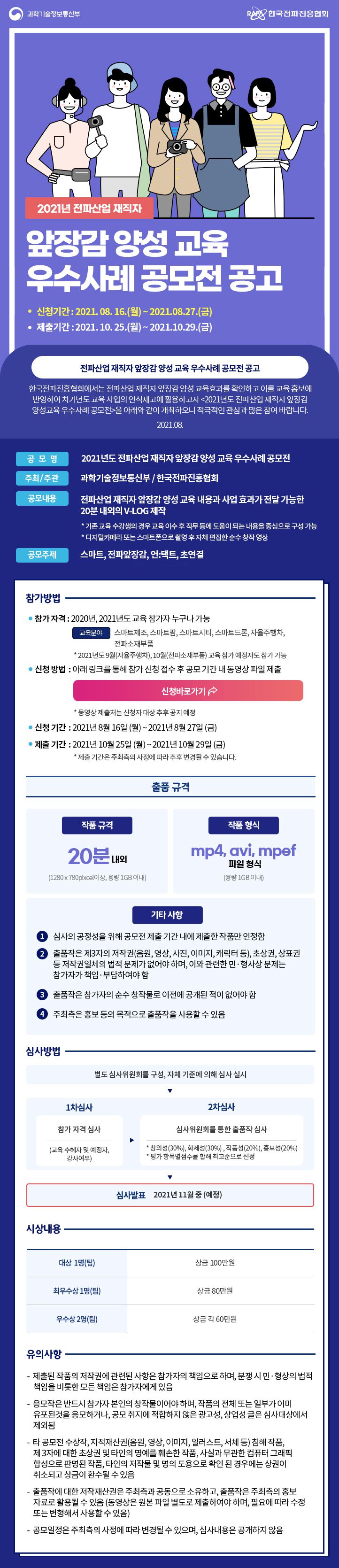 [2021 전파산업 재직자 앞장감 양성 교육 우수사례 공모전(~8/27(금))]