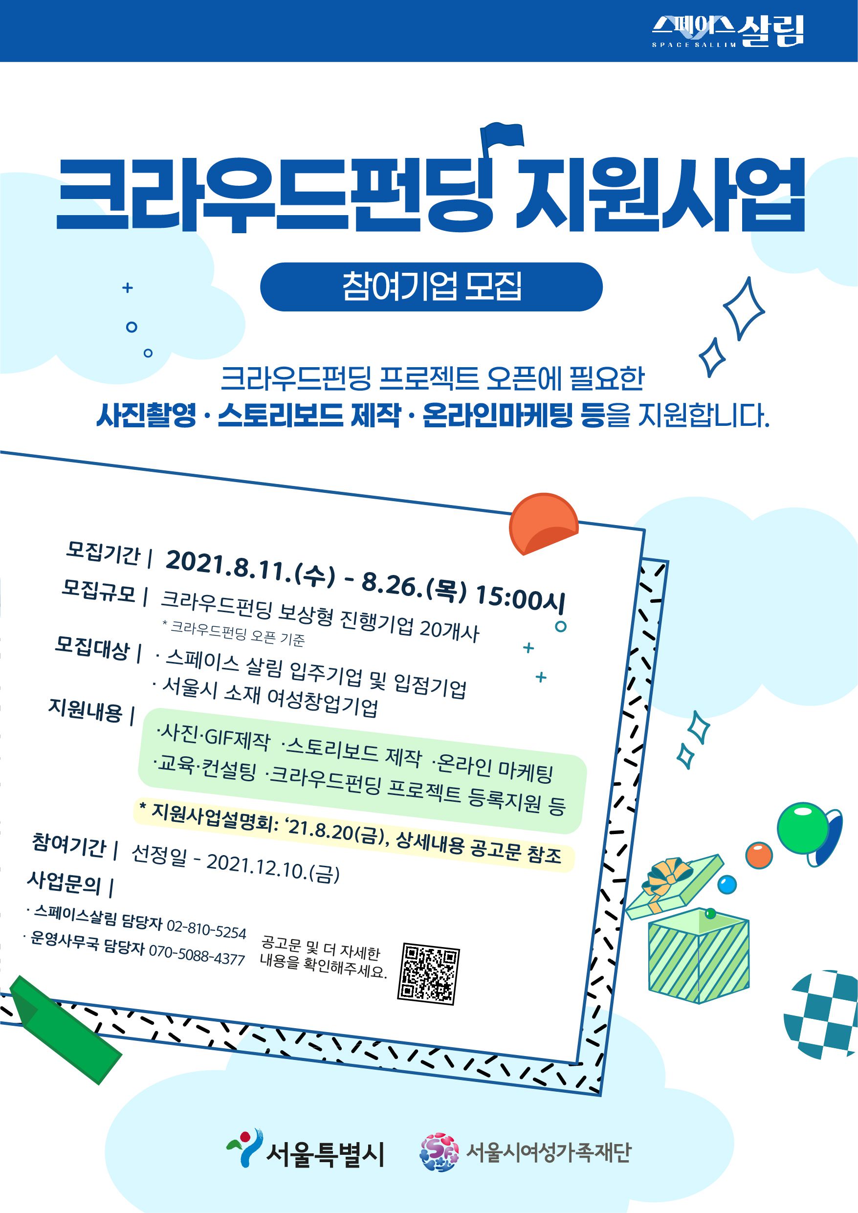 [스페이스 살림] 크라우드펀딩 지원사업 참여기업 모집 (~8/26, 15시)