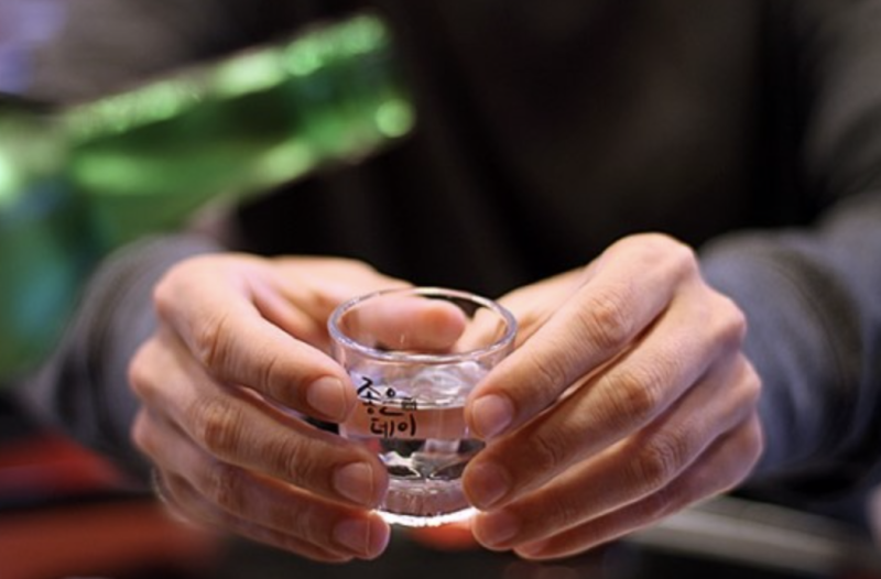 윗사람이 앞에 있을 때는 고개를 돌려 술을 마십니다. 만약 앞과 옆이 모두 윗사람일 경우, 그중 더 덜 상급자의 방향으로 고개를 돌려 마셔야 합니다.