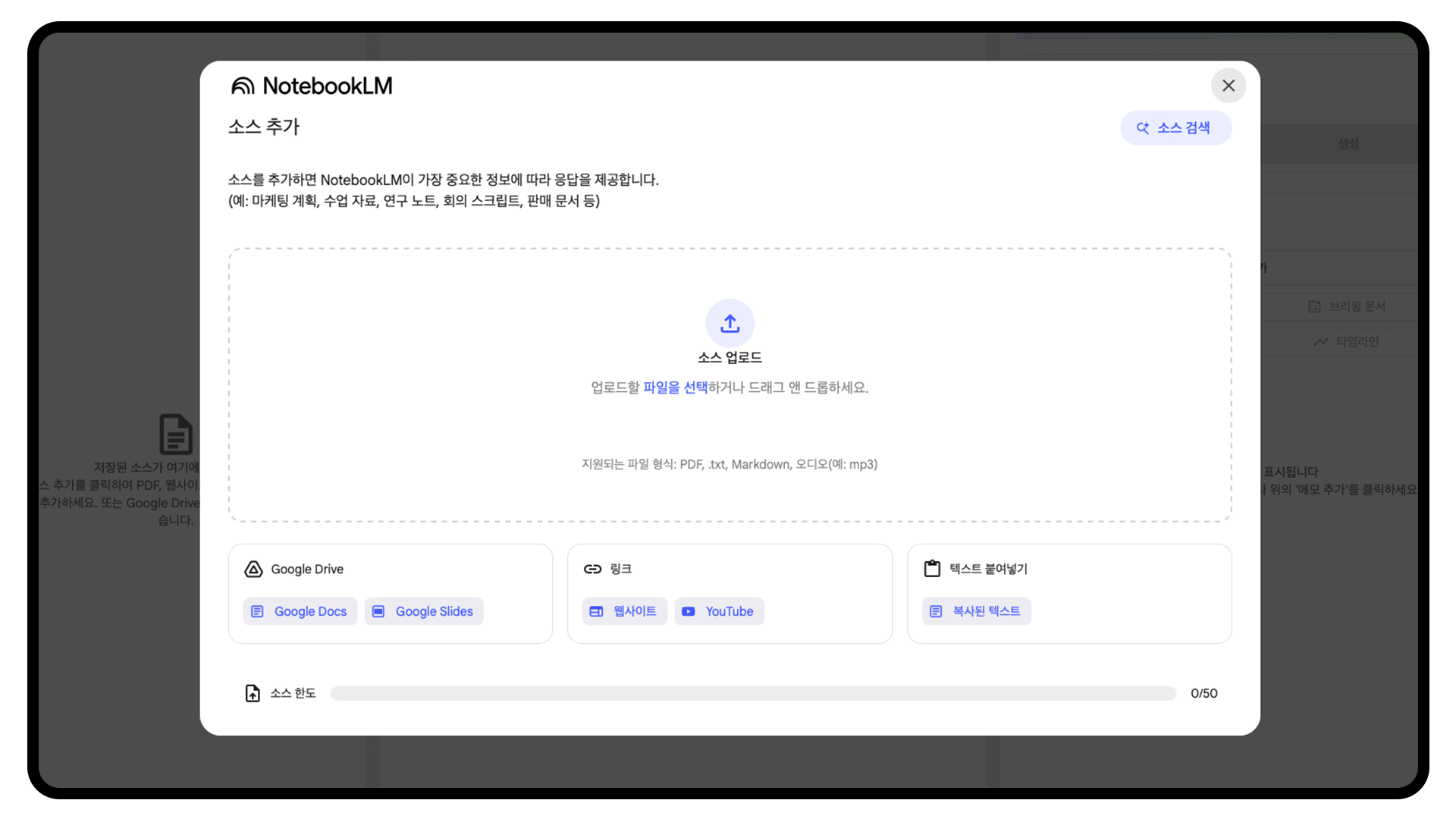 NotebookLM은 구글에서 개발한 AI 학습 도우미로, PDF, 노션, 텍스트 파일 등 다양한 형식의 학습 자료를 불러와 자동 요약해줍니다.