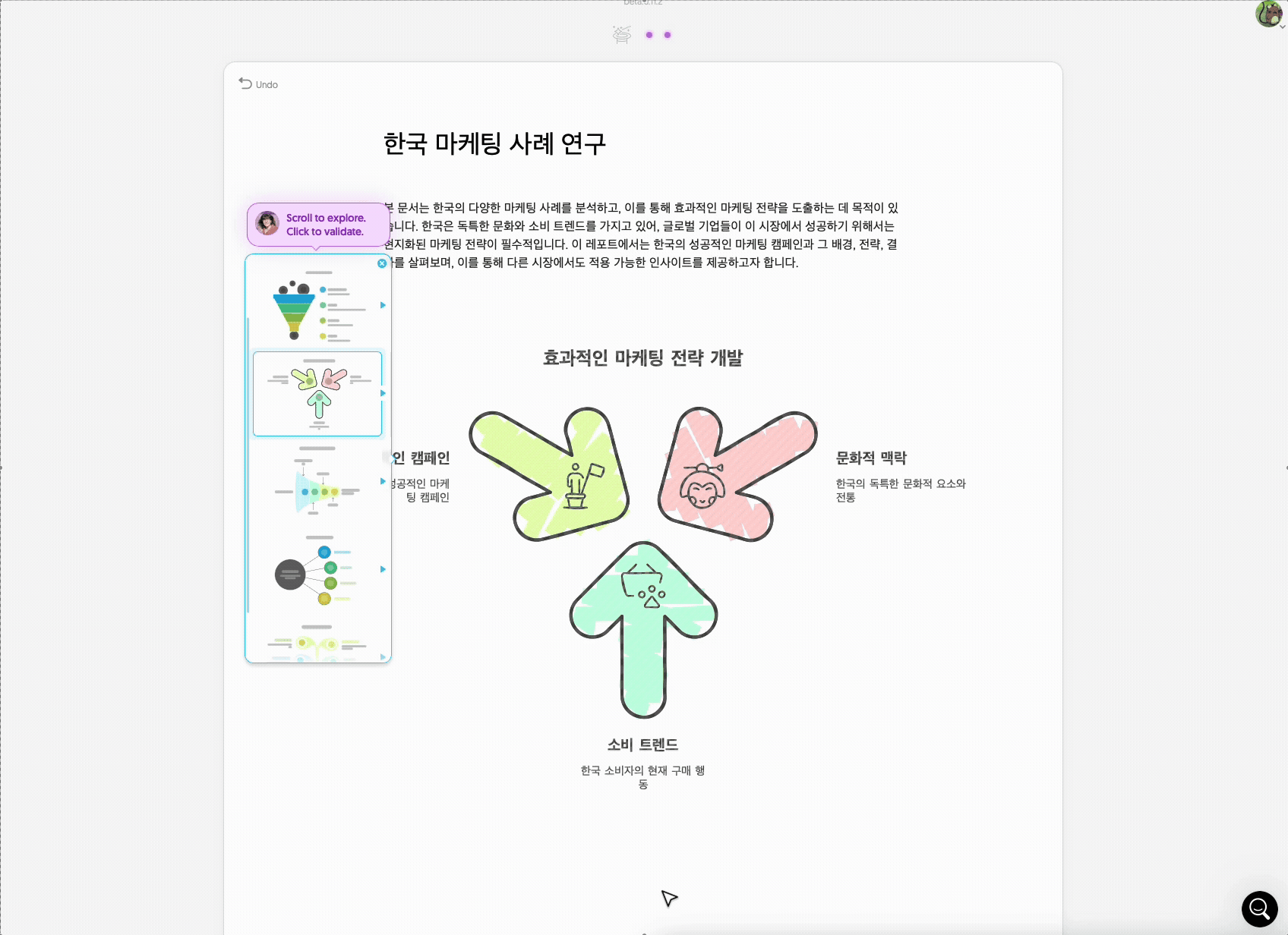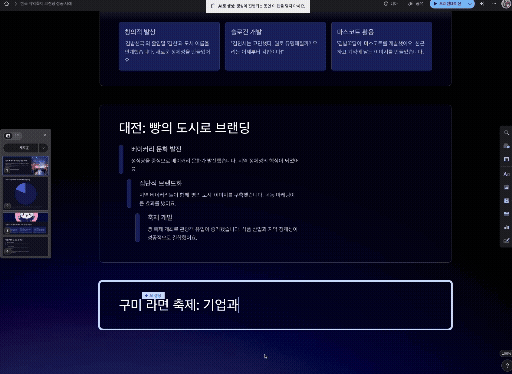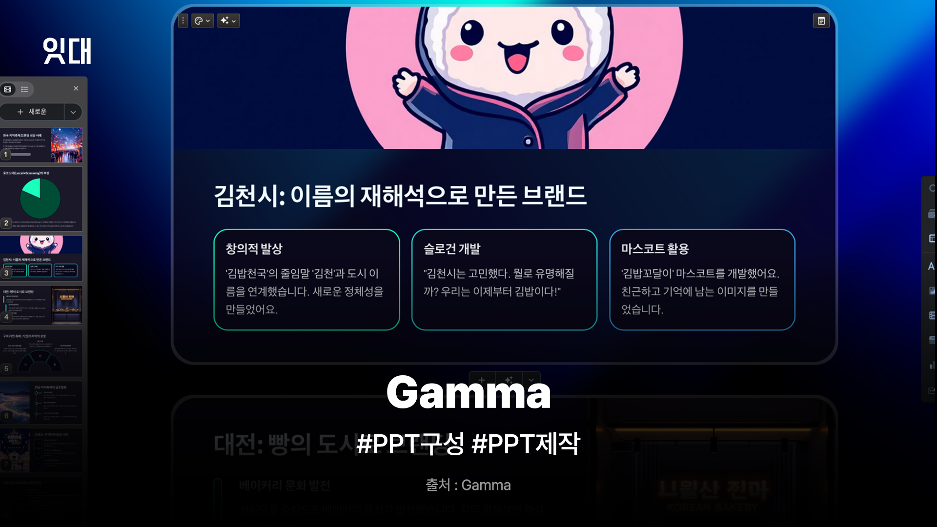 라고 한 문장 입력했을 뿐인데, 자동으로 슬라이드 구성 및 내용을 정리한 것을 볼 수 있습니다.