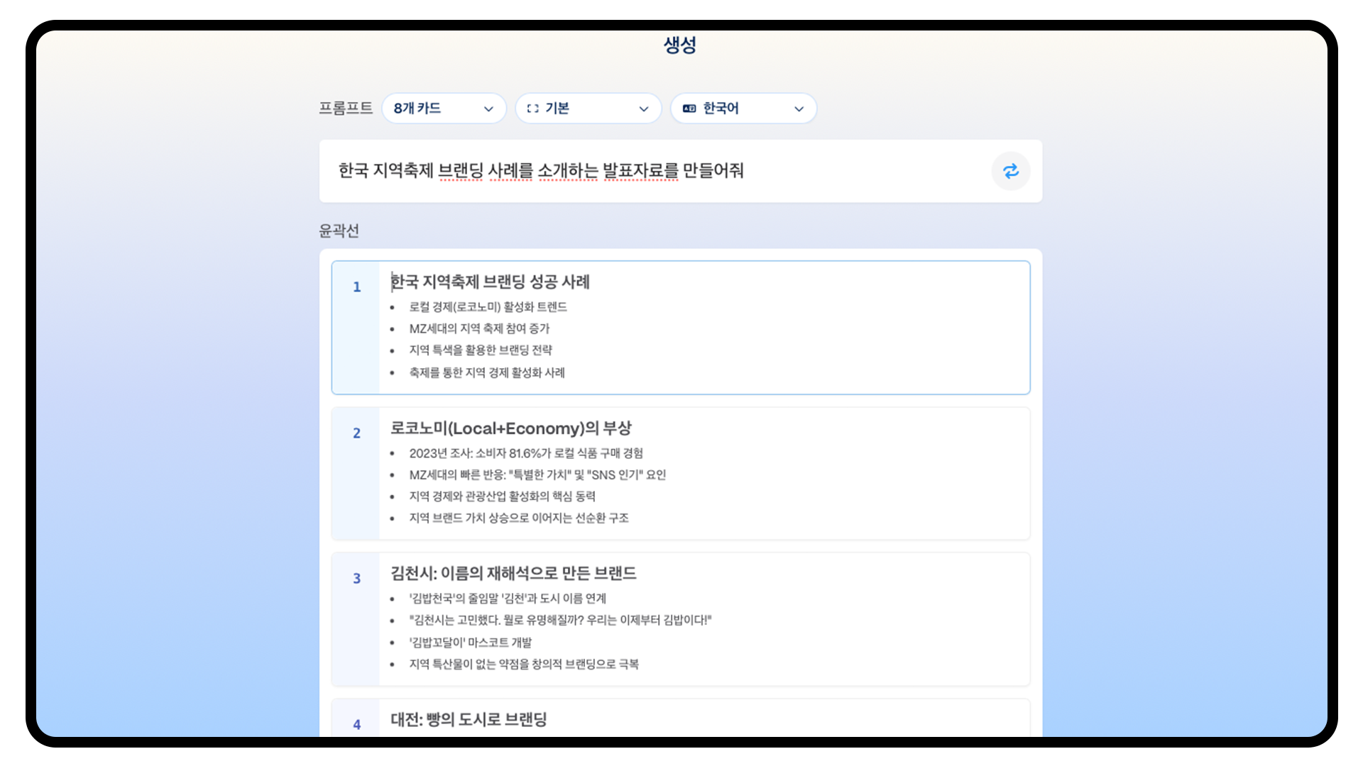 📌 활용 예시: 수업 발표용 PPT 제작, 기획안 정리