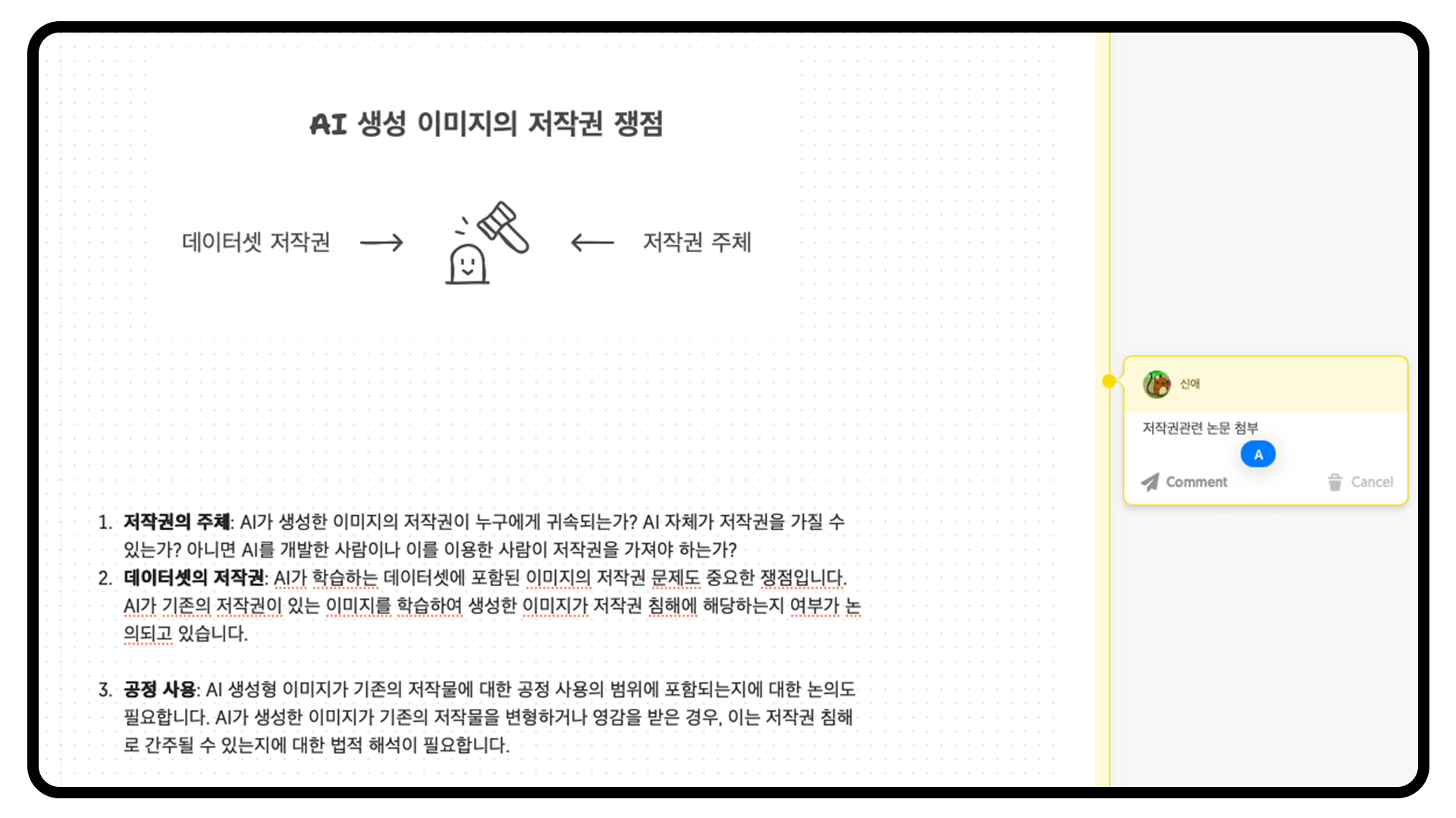 팀프로젝트를 위한 협업 기능도 제공하고 있으니, 주제 선정을 위한 아이디어 회의를 할 때 요긴하게 사용할 수 있을듯 합니다.