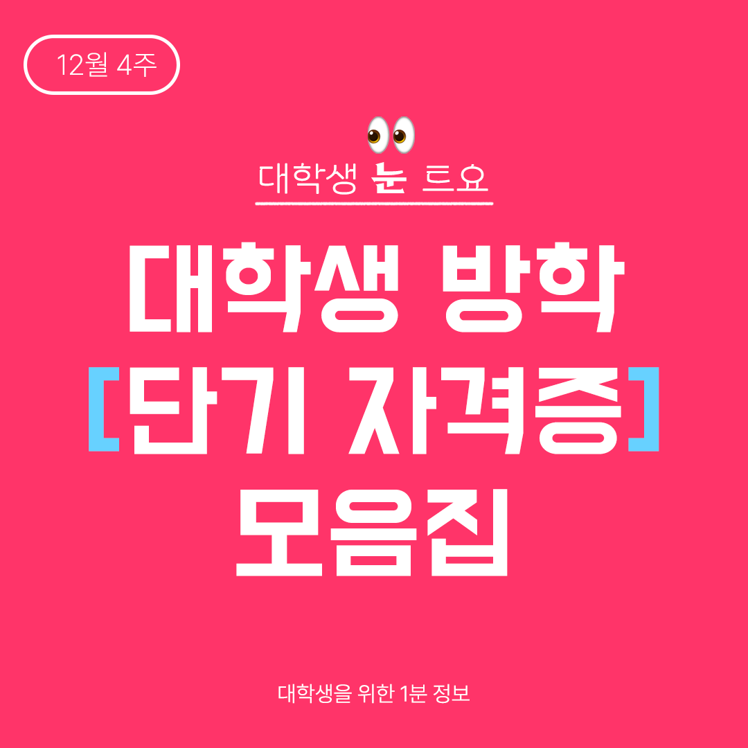 [트요] 대학생 방학 때 따기 좋은 단기 자격증 추천