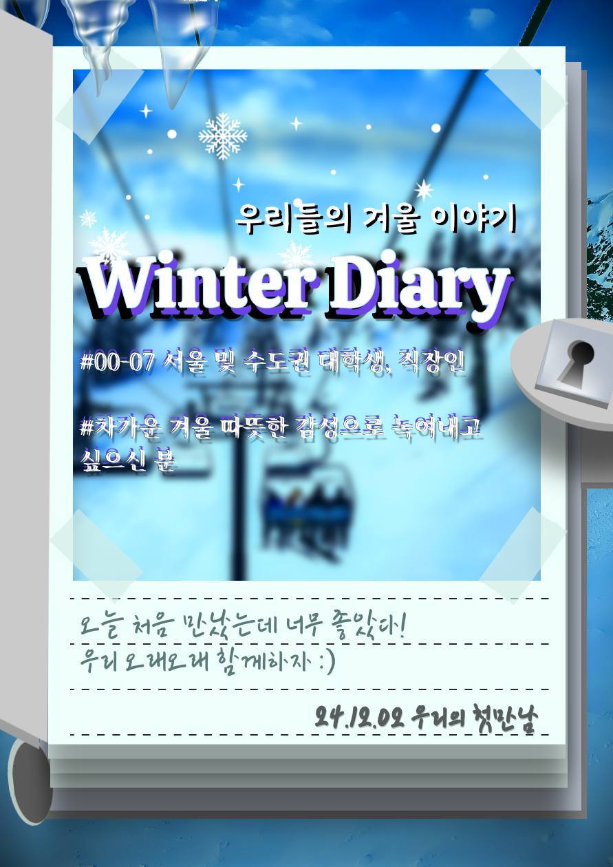 โ ๏ธ Winter Diary๋ ๋ํ์์ ์ํด ์์น์ ์ผ๋ก ์ด์๋๋ ๋์๋ฆฌ์ด๋ฉฐ ์ ์น, ์ข ๊ต, ์๋ฏผ๋จ์ฒด ๋ฑ๊ณผ ๋ฌด๊ดํฉ๋๋ค. ๊ด๋ จ ํ๋ ์ ๋ฐ ์ ์ฆ์ ํด์ถ๋ฉ๋๋ค.