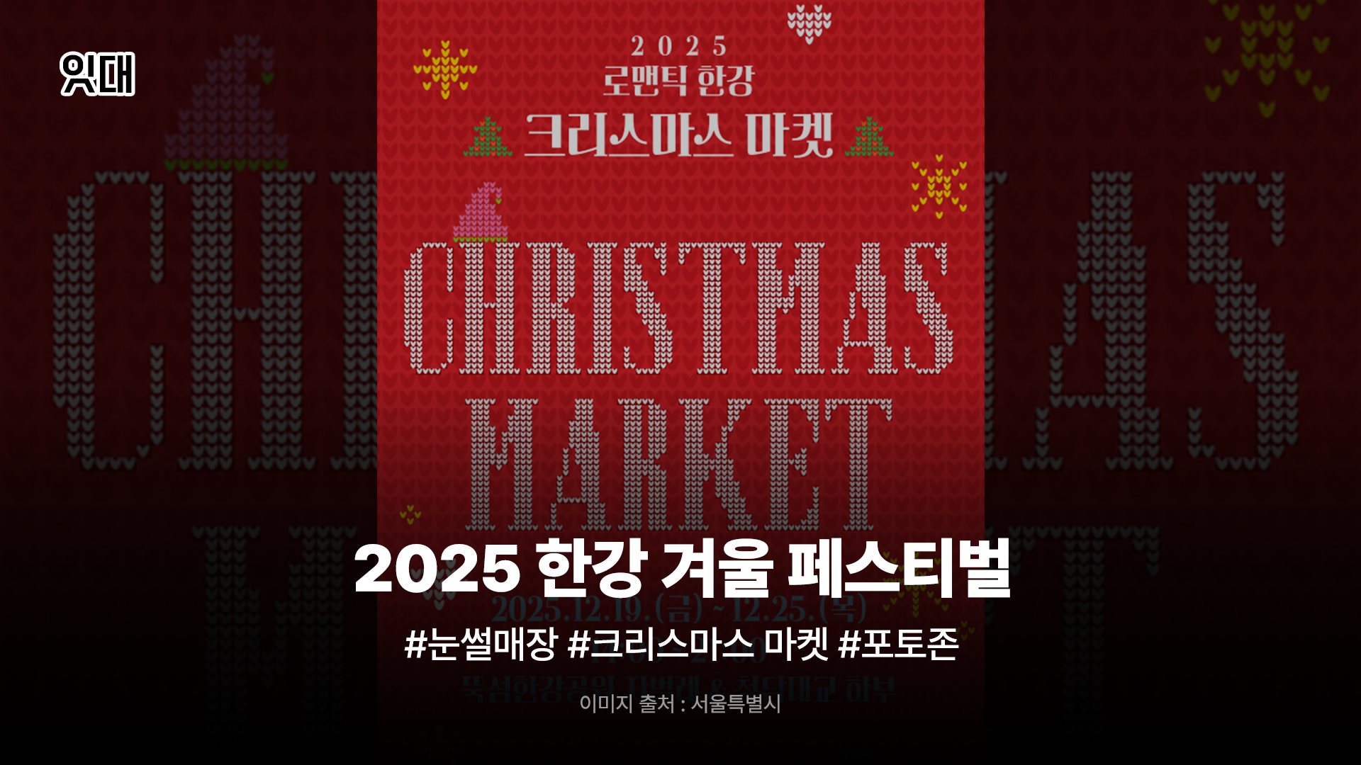 한강이 크리스마스 마켓과 눈썰매장으로 변신했습니다. 반포, 여의도, 뚝섬, 망원, 잠원 한강공원 5곳에서 동시에 열리는 겨울 축제예요.