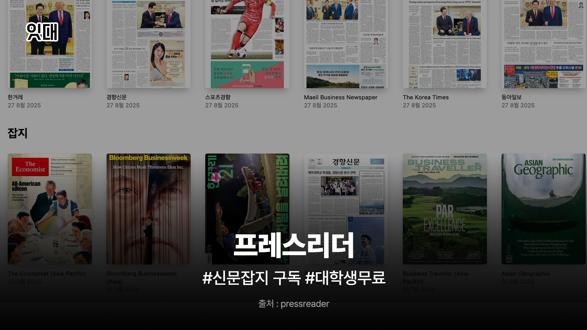 수천 개 해외 신문·잡지 및 국내 신문 무제한 열람