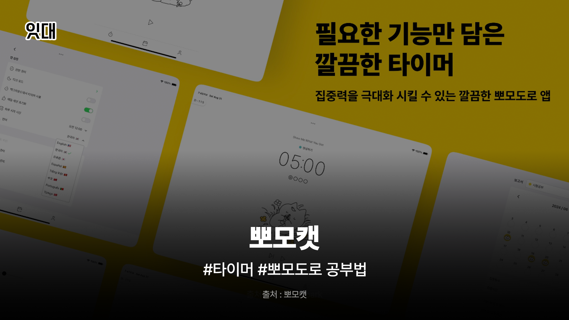 뽀모도로 공부법 기반 타이머와 백색소음 기능을 제공하여 집중력을 올리기 딱 좋아요.