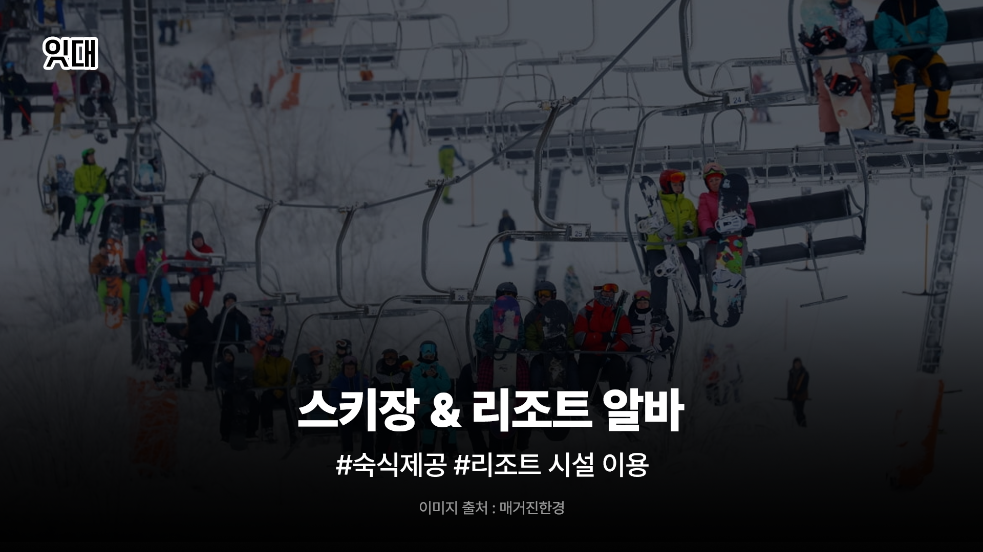 겨울 시즌에만 열리는 시즌 한정 알바로 강원·경기 등 전국 리조트에서 대규모로 모집 중이에요.